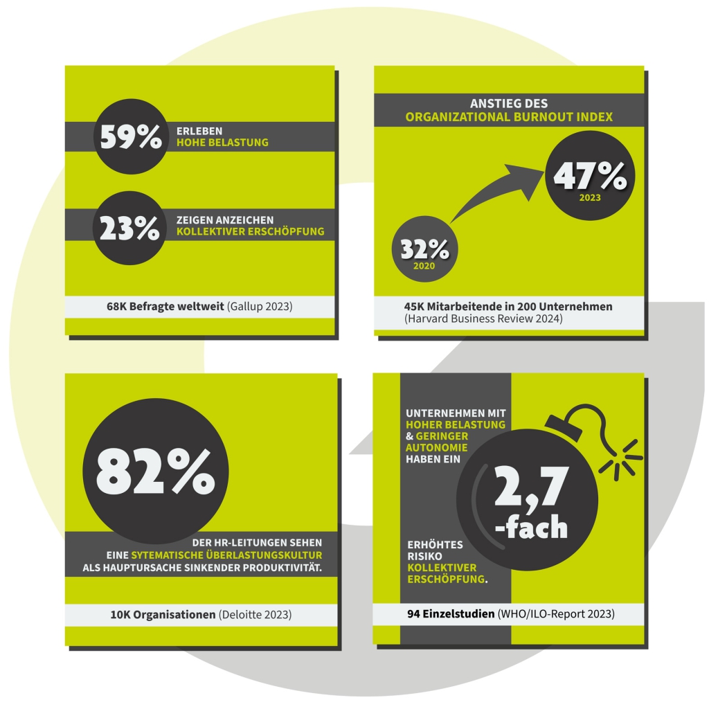 Aktuelle internationale Studien der WHO, von Gallup und dem Harvard Business Review zeigen: Fast jede vierte Organisationweist Anzeichen struktureller Erschöpfung auf.